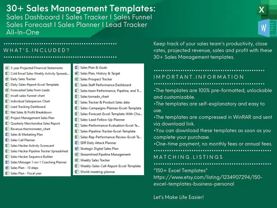 •Sales Tracker – Daily, Weekly, Monthly, Quarterly & Annually